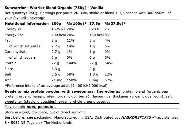 SunWarrior – Warrior Blend Organic Protein (750g) – Vanilla